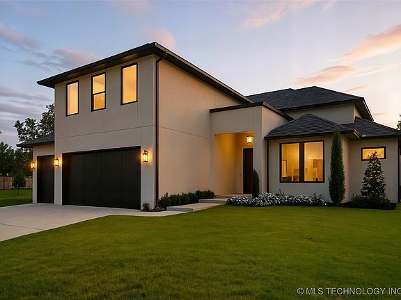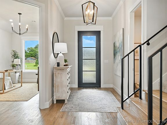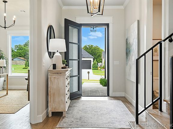 Fantastic new plan in highly sought Jenks schools at Estates at Ritz Hollow. This spacious floor plan is built for entertaining with open concept living and split floor plan. This home has 4 bedrooms, (2 up and 2 down), 3.5 baths, home office, 2 bonus rooms (1 up and 1 down) and 3 car garage! The kitchen features stainless steel appliances, a built-in 66" Frigidaire XL refrigerator/freezer, and soft close custom cabinetry throughout. The primary suite opens to the laundry room. Many extras include: spray foam insulation, tankless hot water heater, full tile showers, energy efficient HVAC, and hardwood floors. Enjoy the walking trails and ponds in this exclusive gated community with easy access to dining, shopping and highways. Builder and listing agent are the same.
