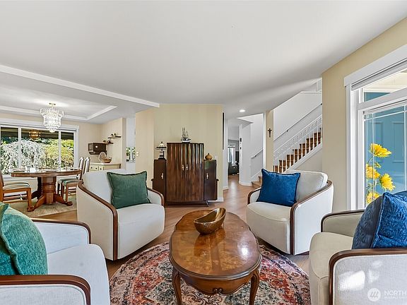A little bit better than new; new kitchen, roof, a/c, floors, carpet/paint. 1-owner home perfectly aged. 2 story entry, wide wood stairs, lower floorplan easily blends room to room. Open living/dining takes in view of stunning landscape. Kitchen, big eat in area & huge grtrm (updated), access fenced yard. 1st flr bdrm (den) w/adj .75 bath. Upstairs:4bds/big 2nd bath. Giant Loft. Views to below. Generous primary & bath (htd flrs) updated & zen infused. The yard might become your happy place - w/big pond/wading pool, hottub,lotza hardscapes, awning covered entertainmnt area. 2-story detached STUDIO w/heat, elec, water. Could be office, shop, party/play house or? Big 3 car gar. Driveway for lotza vehicles; curb appeal 2.0!
