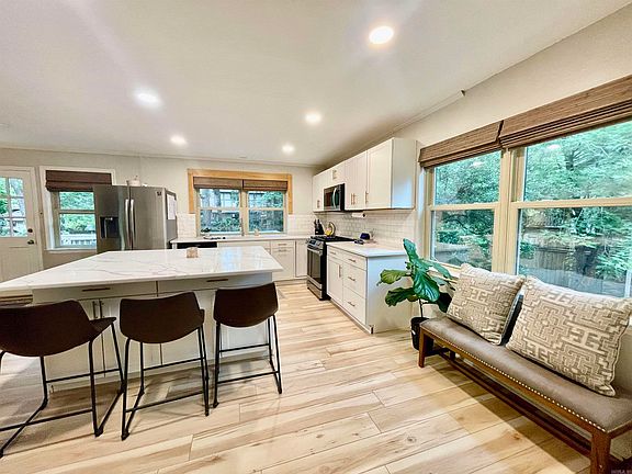 Nestled on quiet Pleasant Valley street just a short walk from the Hidden Valley pool is this updated home on level lot. From the entry find the main living area open to Living Rm and Hearth room with wbfp. The updated kitchen features large island, pantry, SS appl, gas range, and garden window overlooking deck and back yard. The main level has primary suite w/lg walk in closet and bath as well as a bedroom and bath. The lower level features large second living area with 2 bedrooms, bath and laundry room. Amenities include: sprinkler system, exterior lighting. Updates include: Wood laminate floors, kit cabinets, sink, dishwasher, gas stove and light fixtures. See agent remarks!