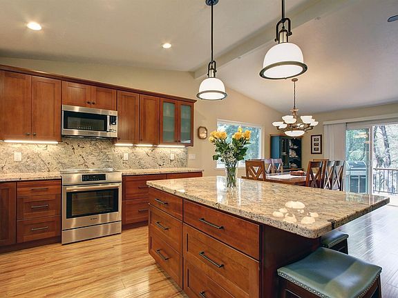 Lake of the Pines golf course home. Nestled on an oversized golf course lot with stunning views of the 7th green! Gourmet kitchen features stainless steel appliances, soft-close cabinets, a deep sink, & abundance of storage. New windows double Payne windows. Fireside living room with open concept & cathedral ceilings. Built-in cabinetry. Georgeous floors. Master on the main level with an additional bedroom. Downstairs, potentially separate living quarters with a w/bedroom, bath, and living room, plus an extra room. The extra room has the potential to be 2nd kitchen. There are 220 outlets, three water sources, and a gas line. There is a double cement driveway. Two decks with views. This golf course setting is beyond beautiful and a true gem. Lake living with endless amenities, Boating, a 19-hole golf course, pickleball, bocce ball, tennis, fishing, kayaking, paddleboarding, sailing, plus so much more. There is a clubhouse, sports lounge, and family pavilion. Live your life to the fullest, where it feels like you are on an endless vacation.