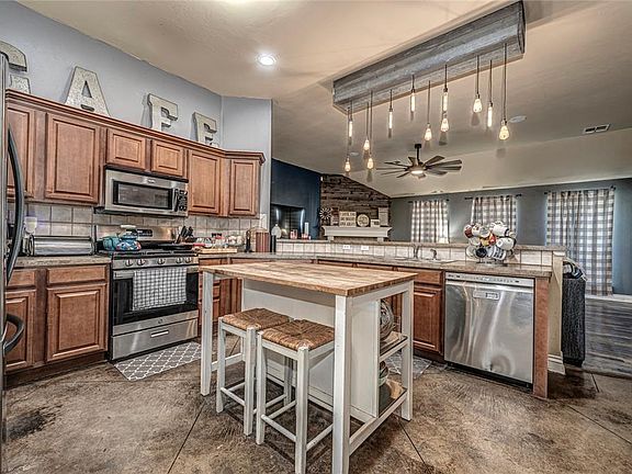 This 3 bedroom 2 bath is ready for its new owners! This property offers a second living area or it could be used as an office at the front of the house. The open kitchen overlooks the the living area. There is also a dining room just off the kitchen. The backyard has a storage building and a built in fire pit on the patio. This home is conveniently located close to the turnpike and also offers a community with a neighborhood pool. The 2 car garage offers a built in storm cellar. Located in Yukon school district you wont want to miss this one. Here is a list of updates: NEW WATER HEATER 2025/NEW A/C/2024/NEW ROOF AND GUTTERS/2025/EXTENDED PATIO/EXTENSION OF DRIVEWAY FOR EXTRA PARKING /FLOORING IN LIVING ROOM/CUSTOM LIGHTING/NEW SHED/HOME AIR PURIFIER