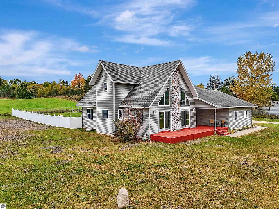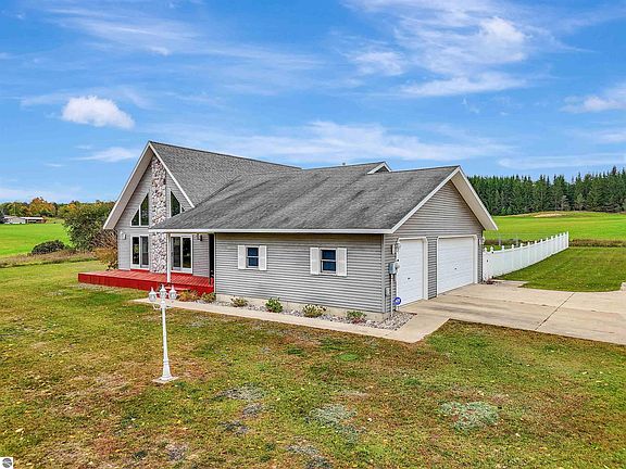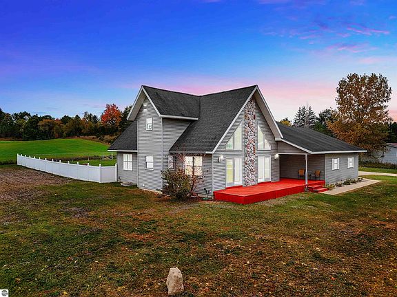 Welcome to this exquisite custom-built home nestled on 2 acres in the heart of enchanting Northern Michigan. With its three bedrooms, four bathrooms (2full/2half), and a host of modern updates, this property is a true gem. As you step into this home, you'll be greeted by the grandeur of vaulted ceilings and an abundance of natural light pouring through the large windows. The main level boasts a spacious master suite with a walk-in closet and a luxurious ensuite bathroom. The open kitchen and living room area is perfect for entertaining, featuring quartz countertops, custom cabinetry, and a generously sized pantry. You'll also find a convenient laundry room and a second bedroom with a half bath on this level. Upstairs, a loft-style suite awaits, complete with a spacious bedroom and a landing area that could serve as a toy room or office space. There's a well-appointed bathroom just off the landing for your convenience. The lower level of this home is an entertainer's dream, with a wet bar that includes a kegerator and refrigerator. This space is perfect for unwinding with friends. The basement also offers a large living or lounge area, a half bath, and a substantial gym/fitness area. Outside, you'll discover a covered front porch and a covered back porch leading to a stunning, fenced-in backyard with a fire pit and custom concrete patio. Enjoy the serenity of the pines and the privacy of this outdoor oasis. Additional features of this home include a 3-car heated and finished attached garage, Anderson windows, a new water heater, a recently updated master bath, fresh paint, and a host of other upgrades. Located on a paved road just outside of town, you'll have an easy commute to Traverse City or Cadillac. Don't miss this opportunity to make this impeccable Northern Michigan home yours, with its blend of modern luxury and natural beauty. The list of features and updates goes on, but the only way to truly appreciate it is to see it in person.