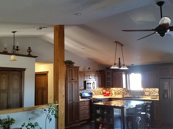 Ultimate One Level Home, Upgrades, Details & Amenities to please everyone! Handicapped accessible, Large doorways, no steps, motion lights etc. Open vaulted floor plan, stunning granite counter tops, gorgeous mission style cabinets & woodwork. Quality appliances, Stone & granite Fireplace. Master bedroom 14' x 17' with master bath, 90 gallon Jacuzzi tub, Walk in shower & wardrobe room. Two other bedrooms are 12' x 14', with Large closets, House has 3 zone A.C. 98% Efficient heat pump for In floor Radiant heating. Stamped concrete. 10' x 30' covered porch, 13' x 18' patio & sidewalks. Irrigation in yard and large garden. Private 6.36 ac. Large White Oak trees overlooking pond. (Additional acreage available) Finished 4 car Attached shop-garage is 30' x 36' Heated floor, wired for 50 amp 220 volt & 120 volt 30 amp RV Plugins, ceiling fan, floor drain, vaulted ceiling, has a 8'x 18' well insulated overhead door shaft drive opener. pole building 32' x 40' x 14' ceiling. with Concrete, electric and sewer. 13'x12' overhead door with shaft drive opener. Now offering a buyer agent bonus. Princeton or Milaca school districts