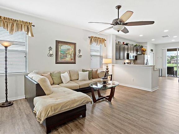 *PRICE IMPROVEMENT* Absolutely IMMACULATE 4 Bedroom single family home in sought after Harrison Ranch! Enjoy the gorgeous pond views from your screened in porch with ceiling fan, or, take it all in from your over-sized backyard!! The interior is absolutely beautiful as well. You are instantly greeted by the SPACIOUS GREAT ROOM which leads directly into the massive Kitchen area! There is plenty of room for table space in the kitchen, along with a large pantry and dry bar area! HUGE kitchen area overlooks the large great room and features upgraded cabinets and stainless steel appliances! Both the kitchen and great room offer direct pond views! Large Master Bedroom features a walk-in closet and en-suite bathroom with a large tile walk-in shower and garden tub! This layout maximizes the space in the home offering 3 additional private bedrooms and a second full bath. The home features upgraded flooring and ceiling fans in nearly every room! Large driveway makes entering your 2-car garage a breeze! The Harrison Ranch Community features a Community POOL, tennis courts, playgrounds, and a clubhouse with fitness center! All of this for only $115 per YEAR! Ideally located just off of 301, this home offers easy access to I75! Just minutes from shopping (Ellenton Premium Outlets), restaurants, parks, kayaking, and the gorgeous beaches of St. Pete, Anna Maria Island, and downtown Sarasota! This one won't last!
