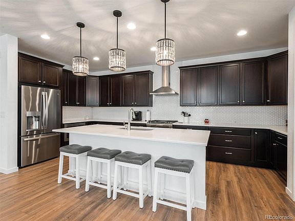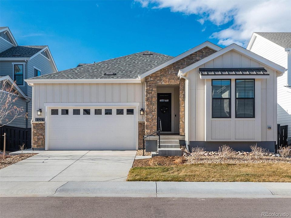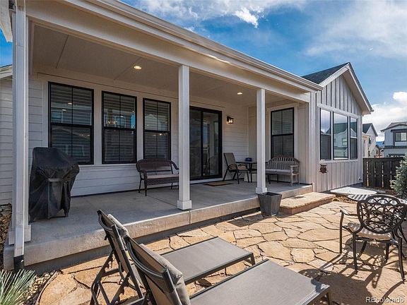 Better than new in Solstice! This lovely ranch style home is filled with all of the qualities you've been hoping for without the wait! The color pallet is neutral with warm wood tones in the flooring and a sophisticated white kitchen with a large center island, beautiful quartz countertops with gorgeous pendant lighting. You'll love the stainless steel appliances and the vent hood over the gas range adds interest next to the classic shaker style cabinets. The kitchen space overlooks the great room with the gas fireplace that will help you relax & unwind year round. The open layout is perfect and this home is filled with natural sunlight through the stunning Silhouette window shades throughout. Step out onto the covered back patio to enjoy the attractive, low maintenance xeriscape. Take some extra time to check out the Solstice neighborhood along the Highland Canal with great trails and near Chatfield State Park with the mountains in the backdrop. You will not be disappointed!  https://my.matterport.com/show/?m=TNZBKseJHBJ&mls=1