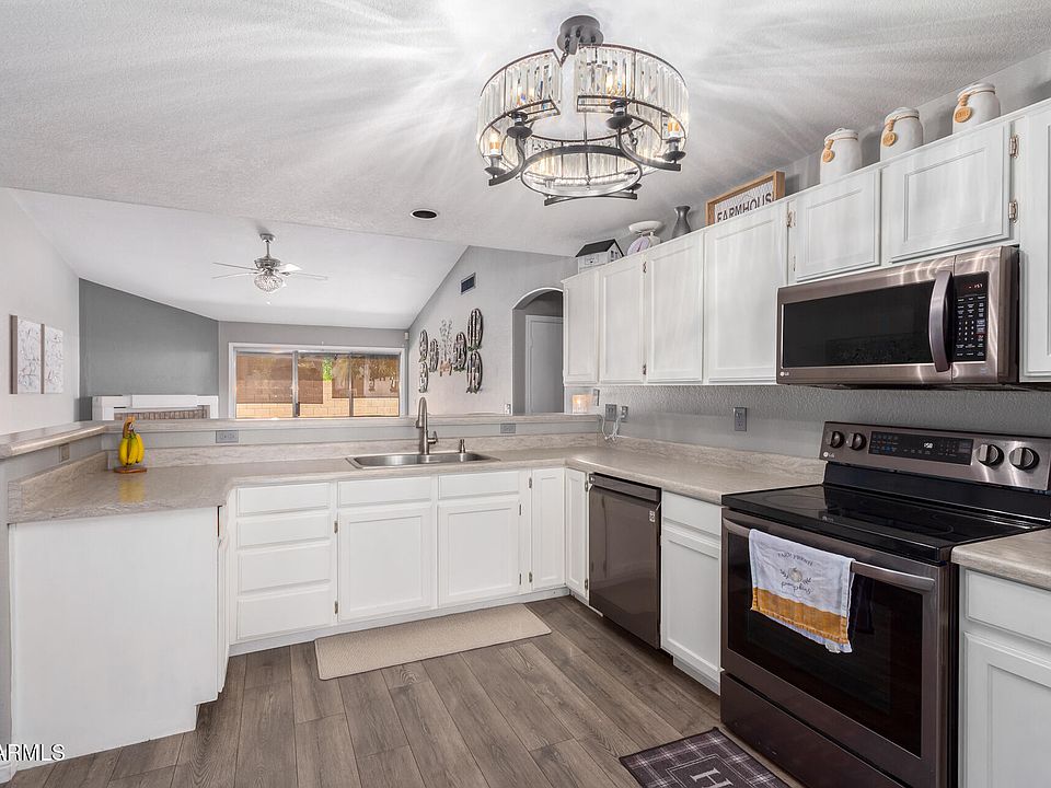 Move-in ready 3 bed, 2 bath home with a split floor plan and stylish remodel! Featuring new white shaker kitchen cabinets, black stainless appliances, and a walk-in pantry. Upgraded laminate flooring runs throughout. Spacious master suite offers a walk-in closet, dual sink vanity, and separate tub & shower. Located in the highly rated A+ Peoria School District!