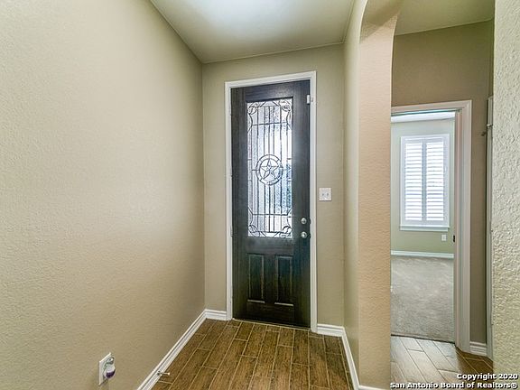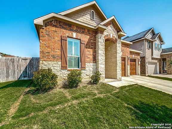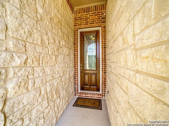 This home was just built in 2018 - pristine, very well maintained, even better than new! Situated on a corner lot in a Texas Hill Country setting. Bright and open floor plan. Special interior features include wide, long entry; arched doorways; 9-foot ceilings; plantation shutters throughout; TV niche in the family room; and wood-like tile throughout, except carpeted bedrooms. Study with glassed French doors. Gourmet granite kitchen with extended island bar and gas cooking. Two secondary bedrooms and bath up front with split master in the back. Water softener. Coated garage floor with sink in garage for messy clean-ups. Center and Old Town Helotes. Highly-rated Northside ISD; less than a mile from Los Reyes Elementary School.