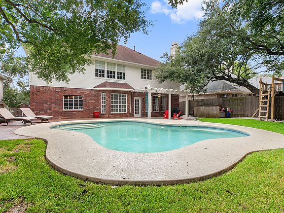 Beautifully updated and ready for move-in, this home is complete with a pool and backyard oasis. Spacious rooms and an abundance of storage with wood floors, custom lighting and so much more. Light and bright island kitchen, overlooking the backyard, with stainless appliances including double ovens too and designer colors and custom modern and creative backsplash. The family room features a beautiful tile fireplace complete with a reclaimed wood mantle. Large owner's suite with free-standing tub and separate, oversized, seamless, glass-enclosed shower. Double walk-in closets too. Built to entertain with three large living areas, a formal dining area, pergola, playscape, and lots of deck space around the pool! Acclaimed Kiker Elementary School. Minutes to shops and restaurants.