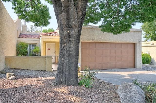 Available Oct 6th. Beautiful well maintained home in great NE heights neighborhood. Open floor plan, lots of natural light, high ceilings, updated kitchen with quartz countertops, new refrigerator, great room has new stone stack fireplace, new tile floors in main bathroom and laundry room, new washing machine and updated fixtures throughout. Bedrooms have good size closets and ceiling fans. Master bedroom is spacious with a huge walk in closet and a door that opens to a small patio and the charming back yard. Back yard has a view of the mountains. 2 car garage. This home also has solar panels which greatly reduces PNM bill and swamp cooler.