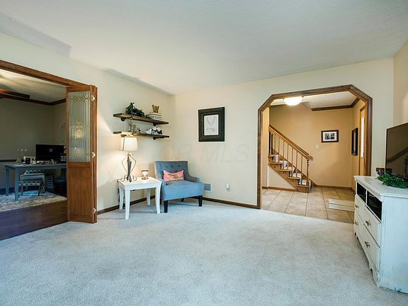 Beautifully cared for, over 3000 sq ft of luxurious living space (2581 on 1st/2nd floors plus an addit. 500 sq ft in the finished lower lever) in this French Tudor 4 BR, 2 1/2 BA 2 story home w/poss. 5th BR. Large traditional floor plan! Formal living room w/sun drenching picture window, dining w/chair rail, crown molding & hardwood floors, recently renovated gourmet kitchen loaded w/beautiful upgraded maple cabinets w/soft close drawers, granite counter-tops, all appliances, pantry and bayed breakfast dinette. Stunning vaulted family room w/brick fireplace & custom bookcases. Grand owners suite w/vaulted ceiling & luxurious bath. Upgrades & extras include finished rec room, 1st floor laundry, patio, large private rear yard backing to corn field. Lots of extras! Pickerington North Schools.