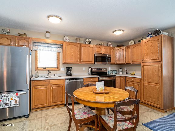 Inviting 3 bedroom home on spacious lot in East Grand Forks. Beautifully maintained home offering comfort, style, and space inside and out. This 3 bdrm, 2 bath home features 1,536 SqFt across the main and lower levels, with an abundance of natural light & warm hardwood floors that create a welcoming feel. The kitchen shines w/rich wood cabinetry, modern appliances, and a functional layout that opens to a cozy dining area. Downstairs, you'll find a large family room and versatile living space perfect for entertaining or relaxing. Outside, enjoy a large yard, concrete patio, heated detached 1-stall garage, and a large storage shed. The vinyl siding provides low-maintenance durability, so you can spend more time enjoying your home and less time on upkeep. This home combines practicality, comfort, and value in a peaceful EGF neighborhood. Move-in ready and easy to love-schedule your showing today!