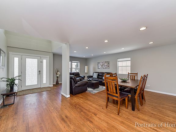Quality built all brick 2 story home, close to schools, shopping, restaurants and easy access for commuting! This beautiful home features gleaming hardwood floors, everything is freshly neutrally painted, painted white kitchen cabinets w upgraded countertop and stainless steel appliances that overlooks dramatic 2 story Family Room with volume ceiling which is flooded with light from windows and has slider out to private backyard. The open floor plan also features a formal living room and dining room that are open to each other, perfect for entertaining! There is a lovely staircase that leads to 2nd fl which features a loft and and four bedrooms, including a Master Suite with walk-in closet and private bath. Tons of upgrades include some new windows, patio door, newly finished kitchen countertop, new vanity in hall bath, updated Master bath, new lighting throughout, newer appliances including washer and dryer, new garage door and more! Awesome location! Close to top ranking schools!