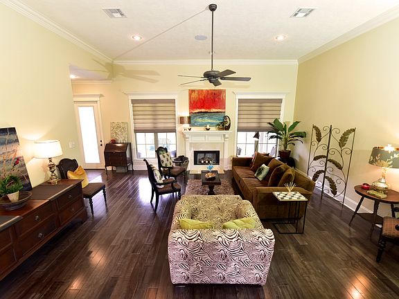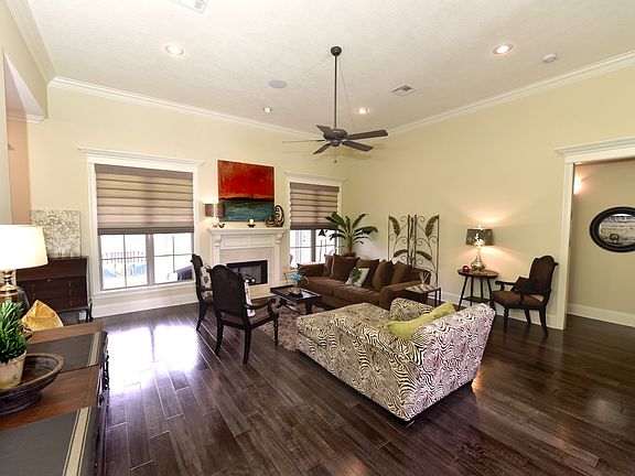 FAMILY DREAM HOME IN DESIRABLE NEIGHBORHOOD Your family will fall in love with this striking 4 bedroom, 3 full bath home conveniently located on a picturesque cul-de-sac off of Holly Hill Road in the most sought-after school district in Lake Charles. Recently built by Sturlese Construction, this luxurious home is only minutes away from shopping, restaurants, and entertainment and offers a spacious open floor plan adorned with soaring 9,10, and 12 foot ceilings, stunning walnut hardwood floors, multi-room speaker system and a cozy remote-controlled gas fireplace. The home centers around a sprawling gourmet kitchen that has been tastefully appointed with custom cabinetry, a large eat-in island, an amazing walk-in pantry and a useful pull-out rubbish and recycling station--all topped by granite and flanked by handsome stainless appliances. Extras like the deep pot drawers and handy pot filler make this a kitchen any chef would love! Nestled privately in the back of the home's west wing, the stunning master suite offers a breathtaking spa bathroom featuring dual and separate sinks and vanities, a jacuzzi soaking tub, tile walk-in shower and private water closet. Double walk-in closets and easy access to the outdoor patio round out this spacious master retreat's attributes. Down the hall, two more of the home's bedrooms are each appointed with walk-in closets, and share a spacious, practical Jack & Jill bath with 2 separate sinks and vanities and a separate shower/tub combo area making mornings run smoothly for those with multiple family members. The fourth bedroom, currently being used as a media room is located in the home's east wing and is opportunely adjacent to a full bath, making it a perfect option for a potential second master or guests or a teens who seek a bit of privacy. The home's curb appeal is eye-catching with a beautifully landscaped front yard surrounding the welcoming covered entryway with double 8-foot wood doors. Equally extraordinary, the privacy-fenced back yard boasts an appealing covered patio with a ceiling fan and built-in gas line for the grill, providing the perfect setting for gatherings and barbecues. The roomy 2-car garage (with utility room) and the oversized driveway provide plenty of space for occupants as well as guests to both park comfortably. The large laundry room with custom cabinetry and a deep utility sink, coupled with the huge attic and brand new energy efficient air-conditioning system round out this home's attributes. Finally, this home sits high and dry in flood zone X so flood insurance is NOT required. Schedule a showing soon, as this one in such a desirable area will not last long!