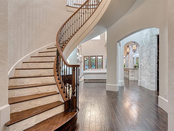 Stunning French chateau, nestled in the prestigious Lakes of Williams Ranch, epitomizes luxury and elegance. This 4-bed, 3-bath, 2-half-bath estate offers an exquisite living experience. As you enter, the dramatic staircase & soaring ceilings set a tone of sophistication & spaciousness. The chef's kitchen is a culinary enthusiast’s dream, with top-of-the-line appliances, custom cabinetry, & ample storage. Formal dining area with stone accent ceiling, stately study with built-ins, & a bar area perfect for entertaining overlooking the outdoor oasis. The primary bedroom is a lavishly appointed sanctuary of comfort and style with a double-sided fireplace and magnificent ensuite bath. Outside you will find a sprawling covered patio, pool & spa, & an amazing outdoor kitchen & fireplace. The guest house, currently serving as storage & an exercise room, can easily be converted into guest quarters. Upstairs, find 3 well-appointed bedrooms, a media, a gameroom, a balcony, & built-in study nook.