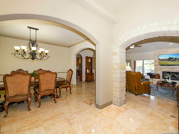 Rare opportunity for Hill Country living on 2.67 acres in The Heights at Comal Trace! Homes in this section rarely come on the market, making this a unique chance to own a custom single-story home in one of Comal County's most desirable locations. Nestled at the back of the community, the property offers exceptional privacy while keeping you close to shopping and dining. Surrounded by mature oaks and a wooded greenbelt, the setting feels like a Hill Country retreat with abundant wildlife including deer and turkey. The open-concept layout features 4 bedrooms plus an office, 3.5 baths, and abundant natural light. The chef's kitchen is a true centerpiece with an oversized island, gas cooktop, double ovens, and walk-in pantry, flowing into a spacious living area with Austin stone accents and a wood-burning fireplace with gas starter. Elegant finishes include polished travertine tile, plantation shutters, and large windows framing serene views. The primary suite offers porch access and a spa-inspired bath with jetted tub, walk-in shower, and dual walk-in closets. Secondary bedrooms provide generous storage, including two walk-ins, and one features bamboo flooring ideal for a craft or art space. The laundry room includes a utility sink, built-in ironing board, space for an extra refrigerator or freezer, and a walk-in storage closet. Outdoor living shines with a covered porch, composite deck, oversized flagstone patio, and a large deer-proof fenced garden with raised beds and timed irrigation. The whimsical flagstone drainage feature adds charm. The 3-car garage includes a workbench, and the extended, widened driveway offers extra parking and RV-friendly features including a 30-amp outlet. Plenty of room to add a pool, RV garage, or casita (subject to ACC approval). This property blends Hill Country charm with modern convenience-a rare find in Comal County!