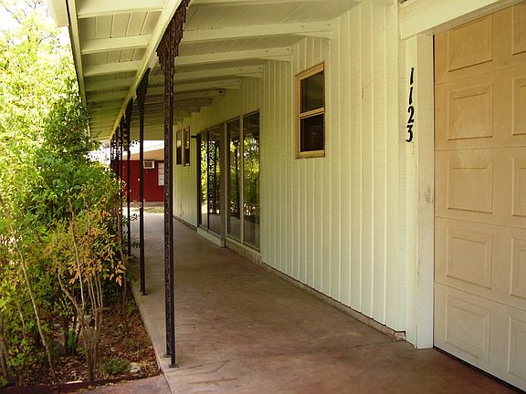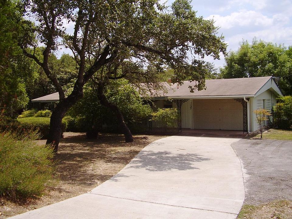 REMODELER'S DREAM!!! This light & bright house & charming guest house sit on an acre of land in a wonderful residential area. Not in a subdivision. No HOA. Fabulous large covered patios front & back. High painted wood ceilings with painted beams throughout home & porches, so interior walls may not be load bearing; allowing for all kinds of possibilities. Sliding glass doors across front & back of open living & dining areas for plentiful natural light. Fireplace in living area. Currently, main home is 2-bedroom, 2-bath, as master bedroom was converted from 2 bedrooms into one larger bedroom. Could easily be 3 bedrooms again. Charming 1-bedroom, 1-bath guest house with kitchenette. Laundry room is not under heat & air, but is in an enclosed room at back of garage.