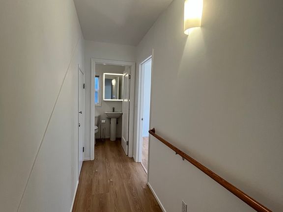 Fresh paint inside unit. Wood flooring throughout with carpet stair.