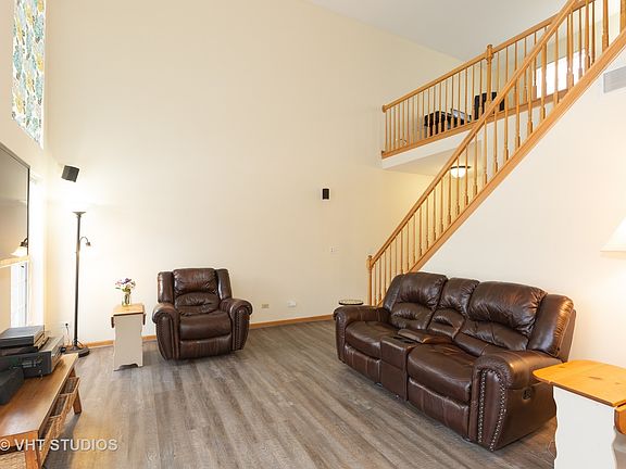 With fresh paint & new flooring, this light-filled townhouse is a breath of fresh air! An open floor plan features volume ceilings & beautiful, sunny windows throughout. So much counter space & cabinet storage in the large, eat-in kitchen. But the best secret lies behind a door where you'll find custom Elfa organizers that create a Pinterest-worthy pantry. An expanded patio invites easy outdoor entertaining through large sliding glass doors off the spacious dining room. Your living room & huge downstairs family room are both wired for a great media experience w/surround sound speakers & flat-screen TV mounts. Expansive windows & a remodeled bathroom help to create a comfortable & welcoming master suite - and a 2nd floor laundry makes everyday living easier. Loft area could easily be converted into a 3rd bedroom, and finished basement is already roughed in for another bath. With easy access to I-55, you're also close to great shopping & restaurants, & award-winning Bolingbrook Parks