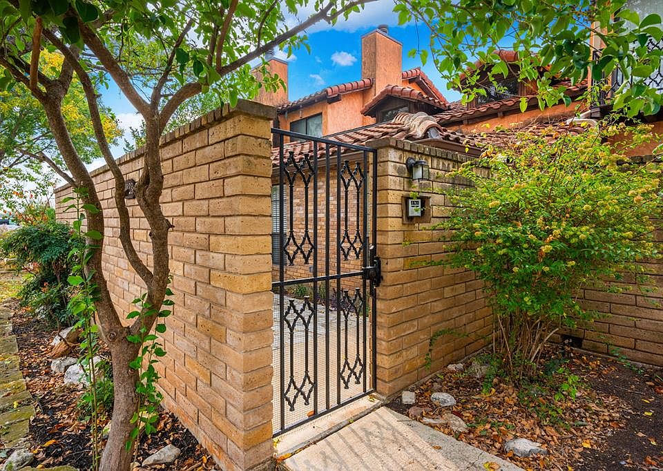 Wood-burning fireplaceModern appliancesCharming brick-walled courtyardCustom built-insBright layoutTall ceilingsTwo atrium-style patios