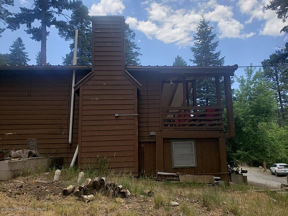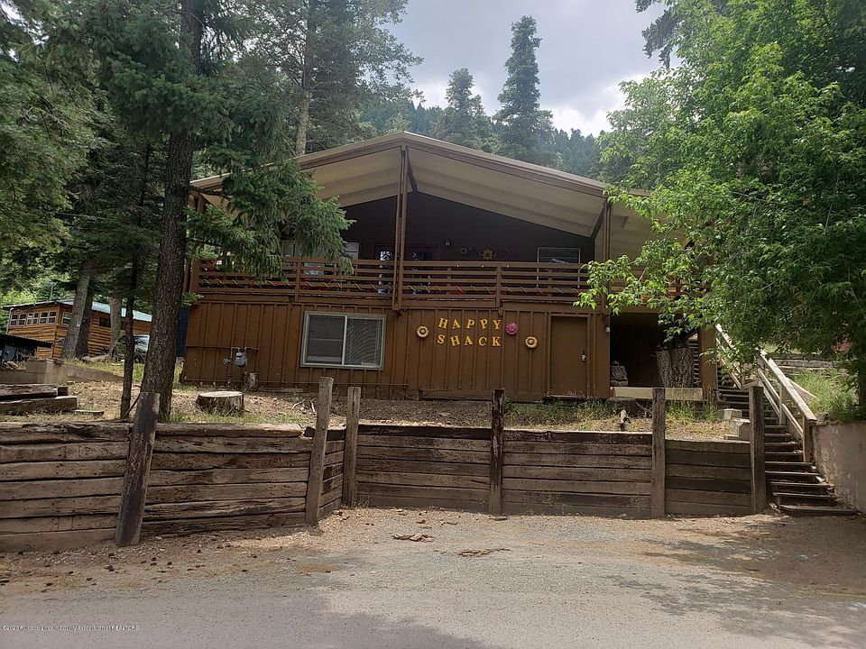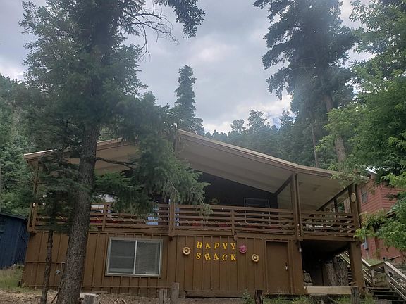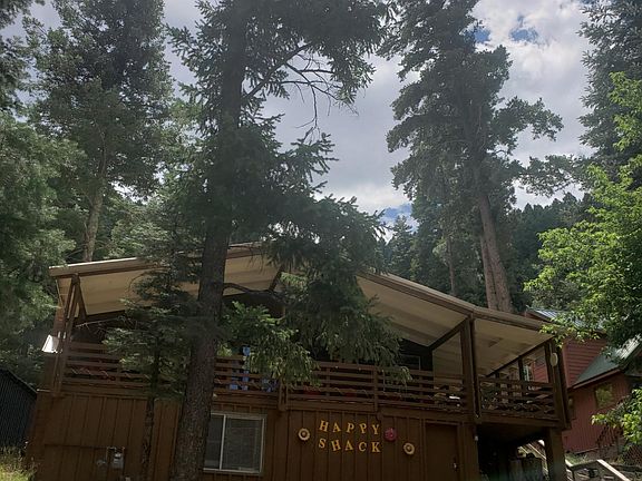 THE HAPPY SHACK! Fun 4-bedroom, 3 bath cabin all the way up in the Upper Canyon, with a big deck overlooking the Rio Ruidoso River Basin. Fully furnished as you can see it... possible owner financing! Cannot see the River, but you sure can hear it! Extra parking spot on the east side.
