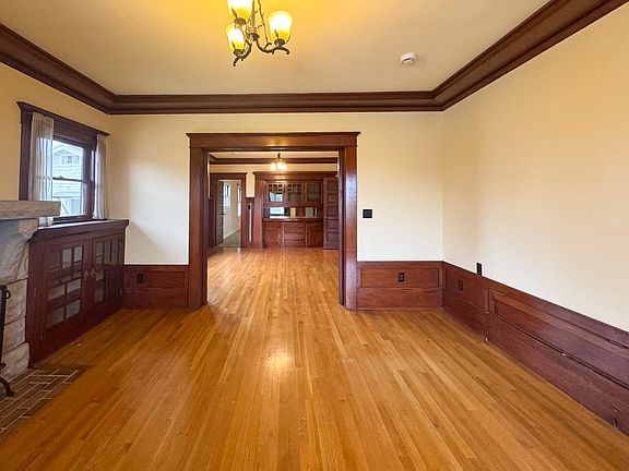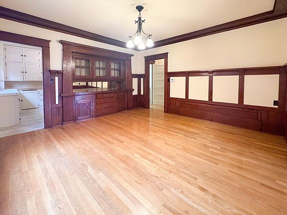 Inside, rich wood detailing, high ceilings, and generous windows reflect the hallmark craftsmanship of the era, while modern updates bring comfort and ease to daily living. The open floor plan includes a formal dining area with stunning built-ins and a natural flow between living spaces perfect for quiet mornings, creative pursuits, or relaxed evenings at home.
