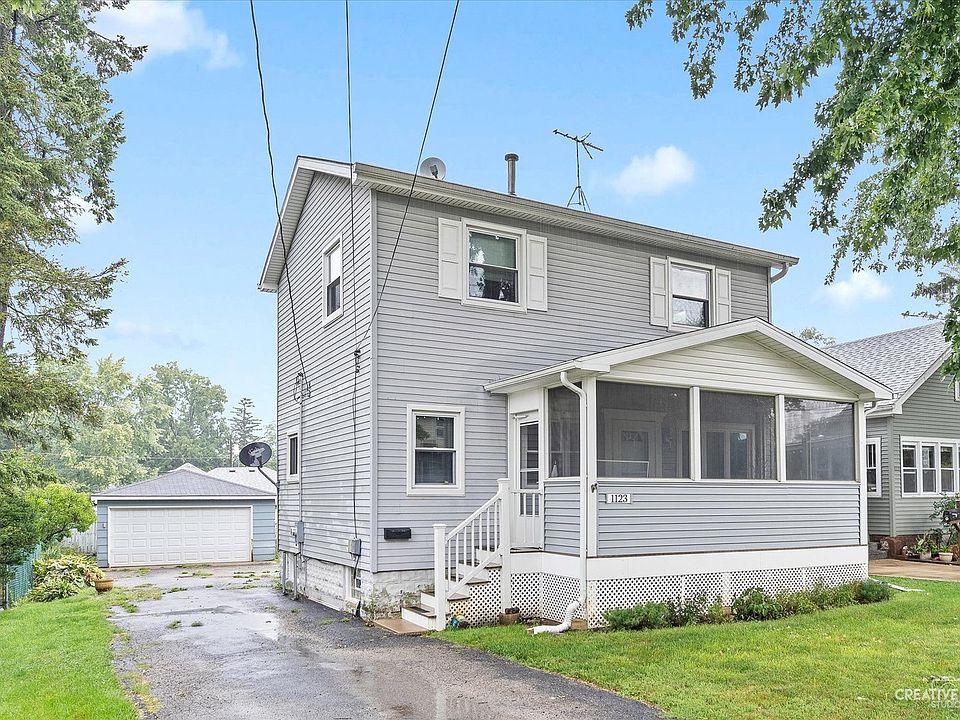 Absolutely BRIMMING with potential and has all the right features of being a fantastic investment opportunity. LOW TOWNSHIP TAXES! Close to Aurora University. Yes, it needs work, but Smart Seller has priced it with that in mind. Large front porch is a great place for morning coffee on a warm Summer day. Inside we have a large living room and generous kitchen. Plenty of space for a table. All appliances are included. Upstairs find two big bedrooms and a full bathroom. The unfinished basement has plenty of potential, and is roughed in for a bathroom. Big back yard with shed, and a detached 2 car garage. Windows and gutters are newer and have a transferable warranty. Well has a new pump. Don't wait on this opportunity. You know they don't come along often.