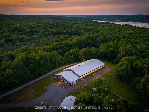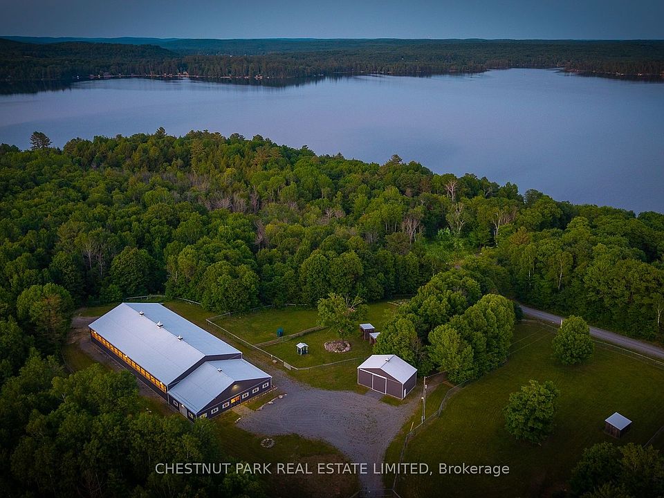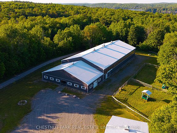 Outstanding opportunity to own just under 100 acres in the Haliburton Highlands, ideal for equestrian enthusiasts, nature lovers, or anyone seeking a private country estate. This versatile property features a 70 x 140 indoor riding arena, 8-stall horse barn, hay barn, and multiple gated paddocks offering excellent infrastructure for year-round riding, training, and horse care. Groomed wooded trails wind throughout the acreage, perfect for horseback riding, hiking, snowshoeing, or ATV adventures. The property combines privacy and recreation while being conveniently located near Hwy 35/118, and close to multiple lakes, golf courses, and all the amenities Haliburton has to offer. Build your dream home, hobby farm, or recreational retreat and enjoy the ultimate four-season lifestyle in one of Ontarios most desirable destinations.