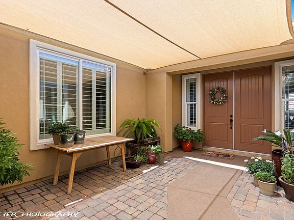 Mtn Views, Updated, Paid Solar & 3 Car-tandem Garage. Located in a peaceful community, surrounded by stunning desert scapes and picturesque golf courses, this home is situated on an elevated corner lot, offering south-facing mountain views. The landscaping is distinctive as the outdoor spaces were thoughtfully designed. The charming front courtyard provides private outdoor living, while the full-length back patio offers stunning mountain views and ample space for entertaining. Inside, the home boasts high-end luxury vinyl plank flooring & plantation shutters throughout. The kitchen is simply amazing, with an expansive quartz-covered island illuminated by a striking rectangular K9 crystal chandelier, modern subway tile backsplash & a costly range hood that adds a touch of sophistication. A new oversized sink, an under-sink RO system, and brand new appliances add both style and functionality. The main bedroom suite is freshly painted in calming tones and enjoy a spa-like en-suite bath with an upgraded tile shower, a relaxing garden tub & a spacious walk-in closet. The oversized tandem 3-car garage is finished with epoxy flooring and offers plenty of room. Solar panels are owned and is alternate power for the home. youtu.be/SbZgtEs0eeU