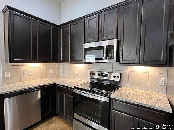 This stunning duplex offers the perfect blend of comfort, convenience, and modern design. Featuring an open floor plan with soaring 11-foot ceilings, recessed lighting, and beautiful acid-stained concrete floors (no carpet!), this home is as stylish as it is low-maintenance. The spacious kitchen boasts granite countertops throughout, sleek appliances, and a layout perfect for entertaining. Enjoy the convenience of a separate laundry room, sprinkler system, and a xeriscaped front yard for easy upkeep. Retreat to the owner's suite, complete with a trey ceiling, walk-in closet, private bath, and direct access to a covered patioall enclosed by a privacy fence for your peace of mind. Ready for immediate move-in, this home is ideally located with easy access to I-10, New Braunfels, San Antonio, and San Marcos.