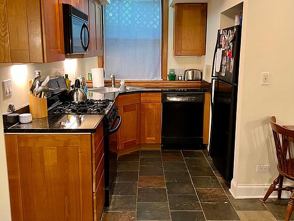 Gorgeous, totally renovated, large 1 BR sunny Evanston apartment in convenient, walk-to-everything location in Ridge Historic District just south of Dempster (near Greenleaf and Oak). HEAT, ELECTRIC, GAS and HIGH SPEED INTERNET all INCLUDED. Deluxe kitchen with granite counter tops, cherry cabinets, and under-cabinet lighting. Includes gas range, dishwasher, microwave and disposal. IN-UNIT washer and dryer. Newer marble bath with Jacuzzi tub and shower, and built-in cabinet. Living room with working gas fireplace looks onto English stone patio filled with potted plants. Beautiful slate flooring. Large bedroom w/ ceiling fan and black-out window blinds which open to view greenery and flowering garden. Full of natural light. Plentiful ceiling and wall lighting. LR and BR blinds included. Private separate side entrance on quiet, beautifully-maintained property. Plentiful street parking. Convenient walk to everything location: Metra and L, Lakefront beaches, Northwestern University, downtown Evanston and Main Street restaurants and shopping (Trader Joe's, Jewel, etc.). Short commute to Loyola University via CTA Red Line or Sheridan Road. ~20 minute Metra commute to downtown Chicago. No pets. Rent includes ALL utilities (heat, electric, gas, water and high-speed Internet). 12 month lease available; willing to consider shorter term rental. No smoking, no pets.