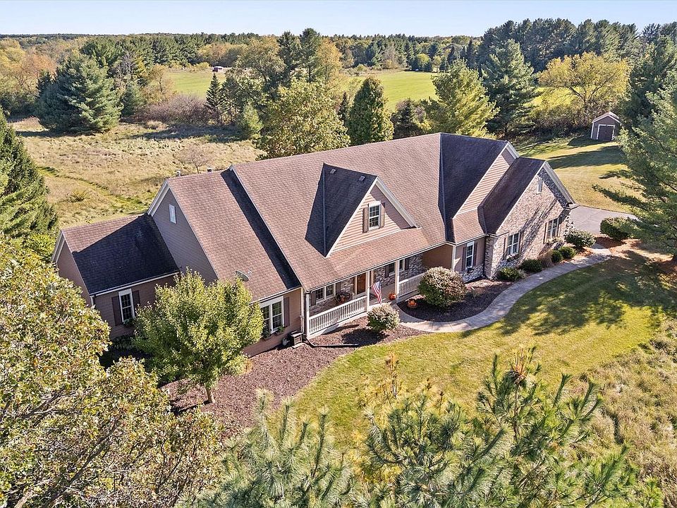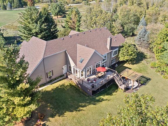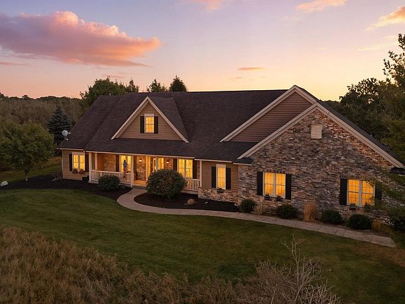 This stunning exposed ranch is perfectly positioned on 6.7 acres of breathtaking natural views. The gorgeously maintained ranch home is spacious & functional. Open concept, it features lots of light, dream kitchen, charming sunroom, dining rm, greatroom, 2.5 baths & 3 bdrms.The primary has dual walk-in closets & spa like bath with a fancy, freestanding tub. Fireplace, hardwood flrs., high ceilings, wealth of windows, extra large 3.5 garage, extra shed & 2 decks make this a perfect home.The exposed, unfinished lower level is a blank canvas ready for your creative vision. Minutes to Milw. & local amenities. Enjoy the sights & sounds right outside your door. Walk the grass trails. See the handmade bird houses already in the woods. This home is more than a residence. It's a prized lifestyle!