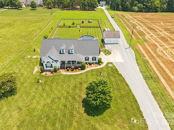 Peaceful country living awaits on this charming and spacious 2-acre property, offering room to grow and endless possibilities for expansion. This move-in ready home features a split bedroom plan with 3 bedrooms and 2.5 baths on the main level, including a main-level primary suite. Upstairs offers a private bedroom with ensuite bath, home office, oversized bonus room, and a 498 sq ft unfinished walk-in attic with interior stair access. The oversized attached garage includes two walk-in storage areas, while the detached 24x24 two-story garage with electricity is perfect for a workshop, studio, or future build-out. Enjoy outdoor living with covered front and rear porches, an above-ground pool, and a fully fenced backyard. A separate fenced area is ideal for a garden or small pasture. Roof replaced in 2020. Just minutes from Hwy 74 and the Monroe Expressway. Qualified buyers may receive $3,000 in lender-paid credits with seller’s preferred lender!