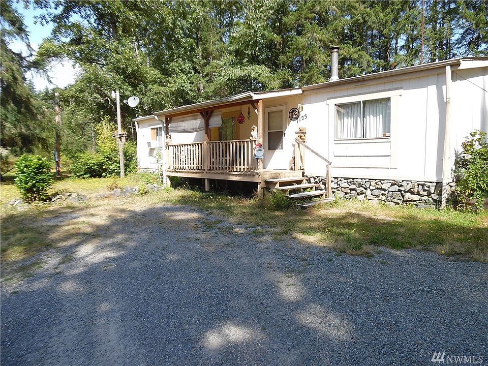 Very private 10 acres approximately 600 feet off main road. Seasonal creek near South property line. Covered front porch, over-sized 2 car garage/shop, one car carport and storage shed. Living room w/skylight and built-in book shelf. Dining room off kitchen. Kitchen with breakfast bar, a abundance of cabinets and counter-tops. Utility off kitchen with access door to back yard. Master bedroom with 2 skylights, full bath and walk-in closet. Two bedrooms and full bath on opposite side of home.