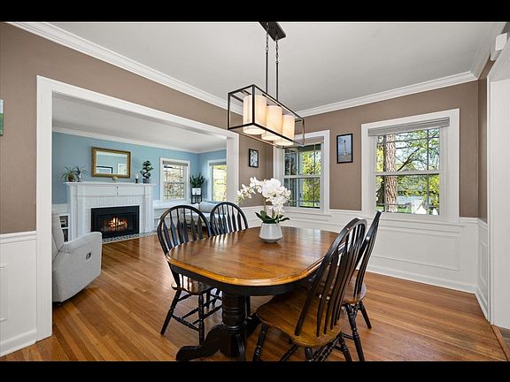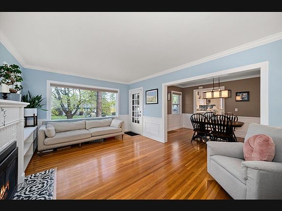 Charming 4 Bedroom, 3 Bathroom Cape Cod located just off High Drive and two block from Wilson Elementary, The Scoop, and Hidden Bagel! The living room has a beautiful gas fireplace with built-ins on either side. Hardwood floors in the living room and formal dining room. Light & bright kitchen with range, built-in microwave, dishwasher, refrigerator and shelving for cookbooks and more! Primary bedroom with large closet, bathroom, and outside entrance to a possible private patio area. Spacious main floor family room with cathedral ceilings, included electric portable fireplace, wet bar with under cabinet lighting and mini refrigerator with sliders that lead to your patio and fenced backyard. Additional family room in lower level. Central Air Conditioning. Garage has opener and additional storage or workshop area. Don't miss this!