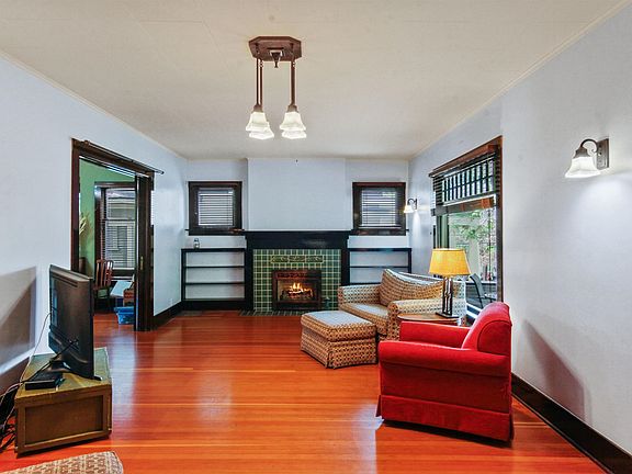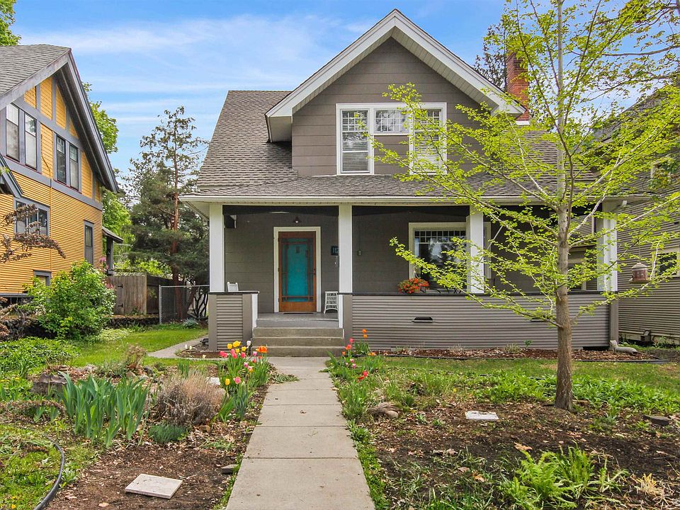 Updated Charming Historic South Hill Home, just blocks away from Huckleberrys. Featuring a bright Spacious Kitchen, SS app, gas stove, quartz counters, main floor utilities. Large living room with gas fireplace, formal dining room, pocket door + glass French doors to den & 1/2 bath. Hardwood floors throughout. 3 bedrooms, 2 baths upstairs. Primary bath has nice shower. New gas furnace, central AC. Relax on your covered front porch. Fenced back yard with covered patio and raised beds. oversized garage/opener.