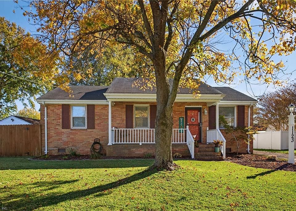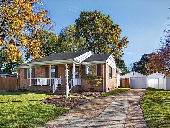 Welcome home to this charming 3-bedroom, 2-bath ranch in an established Chesapeake neighborhood! This beautifully maintained home offers updated bathrooms and a stylish kitchen featuring white shaker quiet-close cabinets, granite countertops, and stainless steel appliances. Enjoy hardwood floors throughout the living areas, with ceramic tile in the kitchen and baths. The inviting sunroom fills the home with natural light, perfect for relaxing or entertaining. Outside, relax on the front porch swing, you'll love the fenced backyard, spacious wooden deck, and detached garage. With a brick front, long concrete driveway, and dedicated laundry room, this home blends comfort, character, and convenience. Ready for you to move right in! HVAC unit manufactured June, 2020.