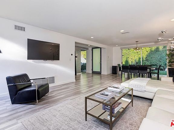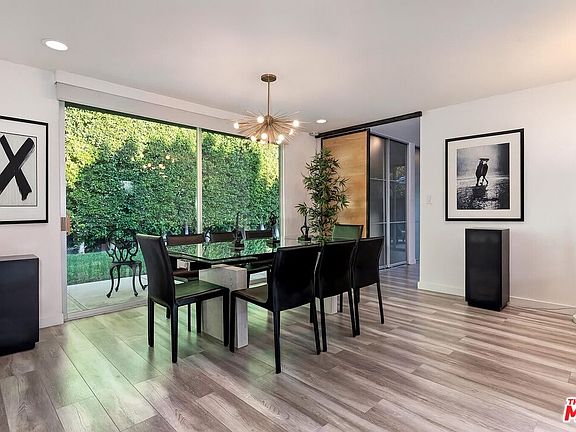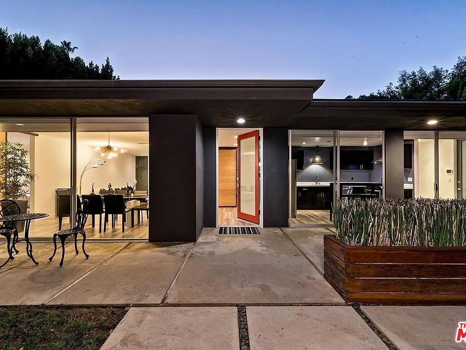 A signature example of mid-century modern design reimagined for today's resort-style living. Beyond a quiet, set aback, understated black architectural facade and tree lined private gated drive, this residence exudes sophistication and discretion from the moment of arrival. Positioned on an expansive, lushly landscaped lot, the property unfolds into an idyllic retreat centered around outdoor courtyards and walking pavers all leading to an in-ground pool with integrated spa. Framed by manicured lawns, mature Ficus hedges, and curated landscape lighting, the grounds evoke an atmosphere of serenity and seclusion. The seamless flow between indoor and outdoor living is accentuated by walls of glass doors that bathe the interiors in natural light and reveal verdant views from every angle. Inside, the home's mid-century spirit is expressed through clean lines, open volumes, and natural textures. The living, dining, and kitchen areas connect effortlessly, offering perfect fireside setting for both intimate gatherings and formal sophisticated to casual entertaining whims. Sliding glass doors open directly to the pool terrace and lawn, creating a true resort-style ambiance found hiding amidst Los Angeles and Hollywood life. The primary suite serves as a private sanctuary with serene pool and garden views, a spacious walk-in shower, and a spa-inspired bath. Additional guest suites mirror the home's elegant design, providing comfort and privacy for family and guests alike. Perfectly situated near the fine dining, coffee cafes, and boutique shops of Tujunga Village, Studio City, and Toluca Lake Village, this residence also offers unmatched convenience to the NoHo Arts District and major studios including Warner Bros., Disney, and Universal. With its modern architecture, private resort setting, and premier Toluca Lake location, 11230 Dilling Avenue embodies the essence of contemporary California living - elegant, effortless, and exquisitely private.