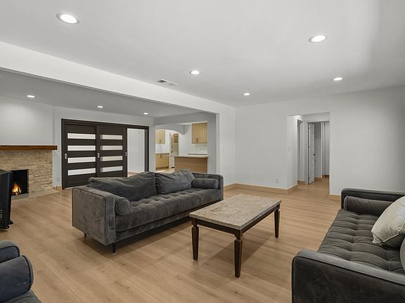 Bright and open home with newer carpet and updated windows. The kitchen includes plenty of cabinet space, recessed lighting, and a breakfast bar, opening to the dining area and family room with fireplace and sliding doors to a large enclosed patio with spa. Primary bedroom has an en suite bathroom and updated finishes. Two additional bedrooms and a modern full bath complete the layout. Also features indoor laundry, a bonus room for office or storage, a large backyard with fruit trees, and an attached garage with carport. Convenient location near parks, recreation, shopping, and freeway access.