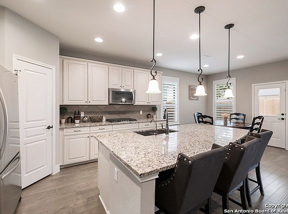 Everything you're searching for is right here! This gorgeous home features four bedrooms which includes the owners & guest suite both downstairs, two additional guest suites upstairs. Some of the extra features and upgrades include, hardwood floors downstairs, upgraded cabinets, granite counter tops, semi-private study/business center, custom shutters throughout the home on all windows, and a water softener. Owners suite features a bay window, walk in closet, double vanities, separate shower and garden tub. Needing extra space- entertain in your game room or settle in for movies in your media room. The backyard includes a covered patio, privacy fence and no neighbors behind. Highly sought NISD schools and close to shopping, restaurants and entertainment.