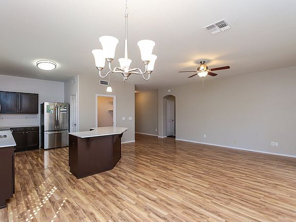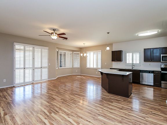 Nestled in a neighborhood near the Superstition Mountains, this three-bedroom, two-bath rental home in Mesa, AZ has a lot to offer. This recently renovated property has the perfect open floor plan. The front door opens into a large great room filled with natural light and glossy wood flooring. All the windows and many of the exterior doors in this home have plantation-style shutters. The kitchen has the extra counter space you want as well as a separate work island. The bedrooms offer wood floors and ceiling fans along with ample closet space. The master suite features a big walk-in closet and its own glass door to a covered patio and fenced backyard. Apply for this home today.