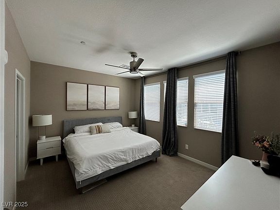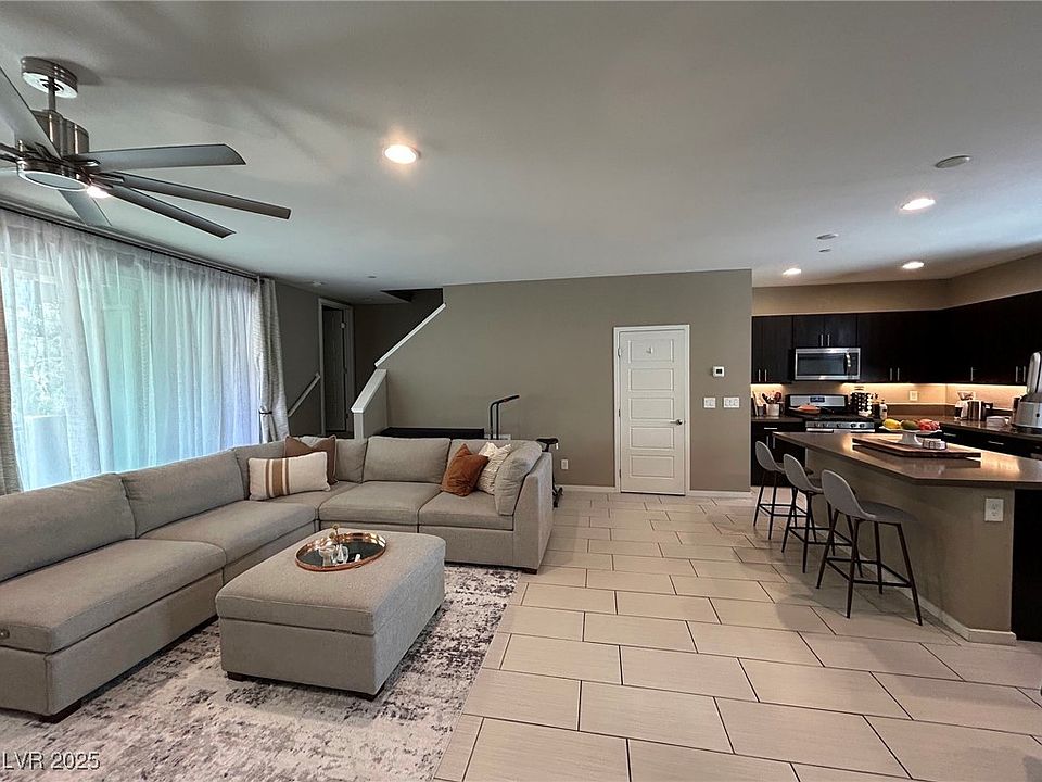 Location Location Location! In the heart of Summerlin, walking distance to all shops, Red Rock Casino and Downtown Summerlin. This 1,342 SF 2 bedroom/3bath unit has an open floor plan featuring elegant tile flooring throughout the first floor, spacious living room that opens out to a private balcony, with a modern kitchen boasting high-end amenities - custom cabinets, quartz countertops, recessed lighting, stainless steel appliances, and a spacious island with seating. The master bedroom includes a long, walk-in closet (not all units have this) and an en-suite bathroom with a standing shower and dual sinks. The second bedroom offers its own en-suite bathroom for privacy and comfortability. Located in a gated community with security cameras, 24-hour fitness center, 2 pools, BBQ areas and more.