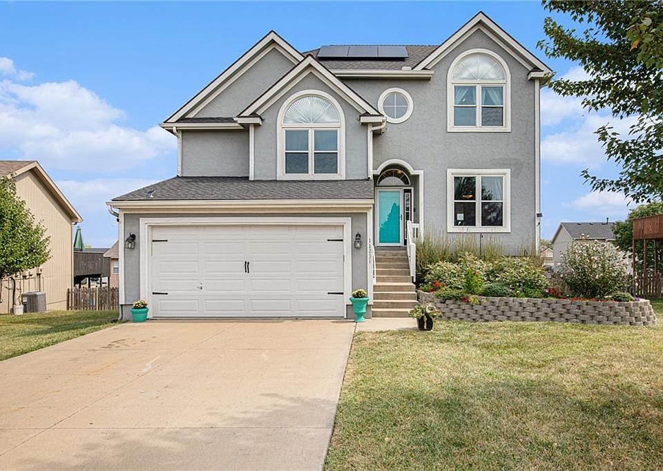 Unique floorplan with 2 primary suites! Vaulted ceilings and lots of windows provide a light and bright main level living space with a fireplace and LVP flooring. The kitchen is equipped with black appliances, generous counter space, and a walk in pantry. The half bath and dining space finish out the main level. A few steps up the open staircase leads to the first bedroom with vaulted ceilings and a full bath with jetted tub, shower, and large walk in closet. Continue on up to the main primary suite that includes vaulted ceilings, double vanities, jetted tub, shower and large walk in closet. Off the garage entry is the laundry/mud room with space to drop your "stuff". The walkout basement is finished with a bedroom/walk in closet, full bath, private office and rec room. The deck off the great room has stairs to the yard and lower level patio. Fully fenced level yard. BONUS SOLAR PANELS THAT WERE JUST INSTALLED A YEAR AGO HAVE CUT THE UTILITY BILLS BY APPROXIMATELY 65%. COST OF PANELS WILL BE PAID OFF AT CLOSING BY THE SELLER.