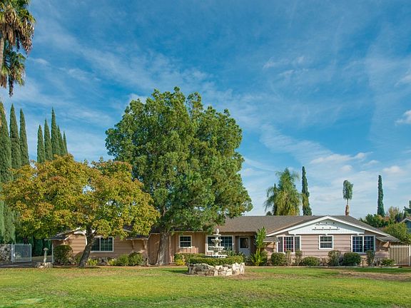 This light and bright custom ranch home sits on a sprawling, flat 17,647 square foot lot in the Award Winning Granada Hills School District. The home features original hardwood floors, granite counters, newer appliances and recessed lighting. The bedrooms are light and bright. A generous sized kitchen has space for your breakfast table and is open to the Family Room. The spacious family room features a brick fireplace and beautiful vaulted wood-beam ceilings. The huge living room features a gas log fireplace with views to the pool. The garage is currently used as a huge, 500 square foot bonus room. This space is in addition to the house square footage. The driveway spans the entire length of the property and ends with a carport and a separate area, perfect for RV parking. Great location on a quiet residential street with optional membership into the Old Granada Hills Residents' Group.