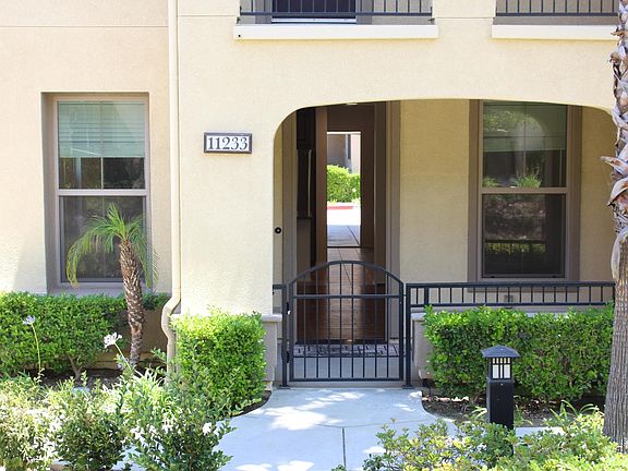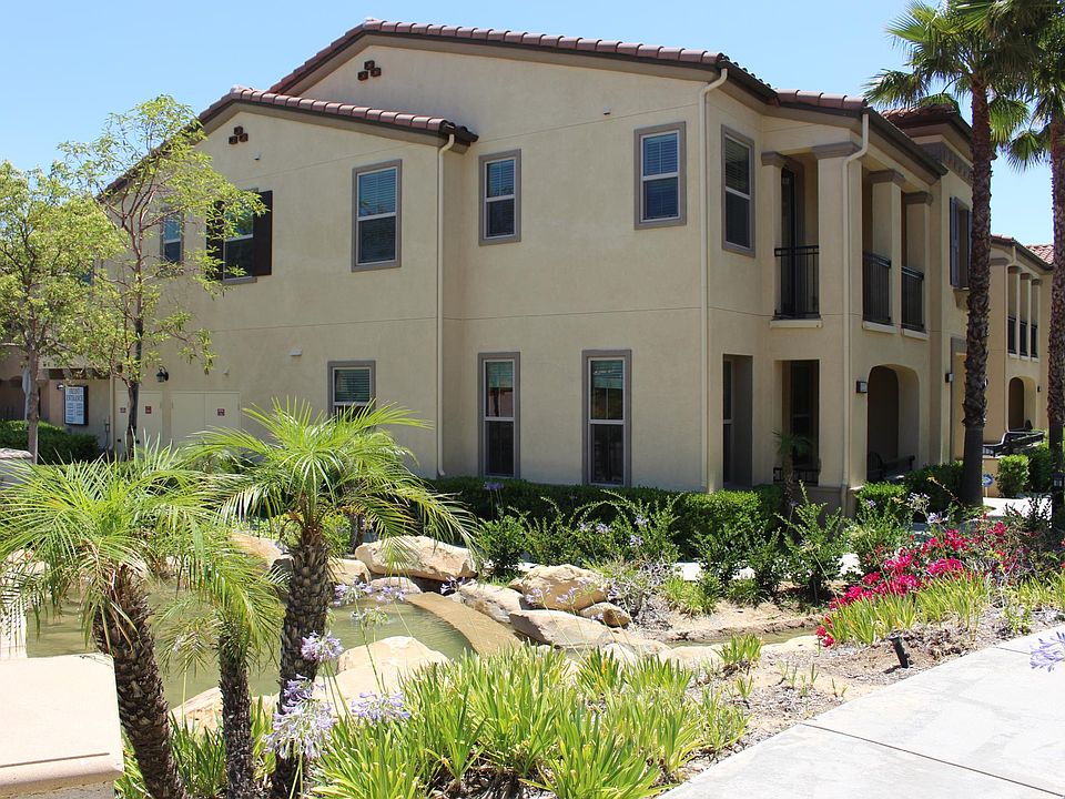 Luxurious 2 bedroom 2.5 bath end unit townhouse with an attached 2 car garage in the highly desirable guard gated Aldea community. Enjoy life on the porch or the balcony by appreciating the pond, the waterfall and the occasional sighting of several ducks parading up and down the pond. Excellent floor plan with an office/den/play area in between the bedrooms. Refrigerator, Washer and Dryer are included. Superb location for entertainment with gourmet restaurants and movie theaters at the Vineyard. Save hours of shopping by walking to Whole foods, and multitude of stores at the Market Place. Simply awesome. Come and enjoy a private tour.