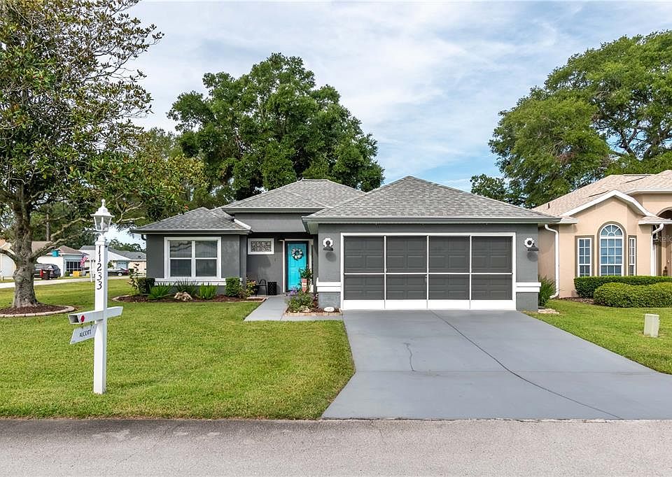 Welcome to this beautifully updated Turnberry Extended model located on a desirable corner lot in Oak Run, a vibrant 55+ community. This home offers 2 bedrooms, 2 bathrooms, and a versatile bonus room currently used as a guest space but perfect for an office, hobby room, or whatever fits your lifestyle. With 1,637 heated sq ft, it features a new roof (2024), HVAC (2016), newer appliances, indoor laundry, a front storm door for added security, high toilets, and an open floor plan filled with natural light. Every room is finished with elegant white faux wood blinds, and the kitchen boasts ceiling-height cabinets that provide abundant storage and a sleek, polished look. The two-car garage with screened doors offers excellent airflow, plenty of storage, room for your golf cart, and still space to park your car. Oak Run residents enjoy an active lifestyle with three clubhouses, five pools, five hot tubs, two fitness centers, a golf course, restaurant, pickleball, tennis, shuffleboard, bocce ball, horseshoes, and more than 110 clubs and activities. Don’t wait on this one—it won’t last long! Schedule your private tour today!