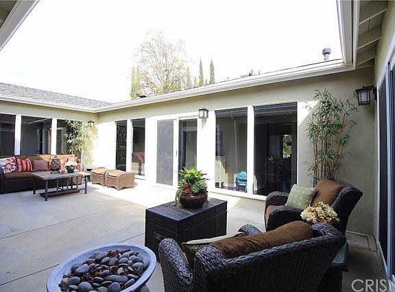Welcome to Granada Hills, home of the historic Deodar Cedar Trees that line White Oak! This upgraded home sits on a large lot set back nicely from the street with inviting circle driveway. Private center courtyard surrounded by walls of glass and charm! The courtyard blends outdoor living beautifully with indoor living space. This home exudes just a touch of the Modern Flair that we all love! Once inside you find warm rich wood plank flooring on this very open floor plan, sometimes referred to the Hawaiian Model! Walls of glass, living room is open to the formal dining room. Large kitchen with built in refrigerator and garden window. Very light and bright with an abundance of counter space and generous cabinetry. Breakfast nook overlooks lush, lush rear yard. Family Room with unique fireplace and views of the courtyard and rear yard with sparkling pool. 4 overly good sized bedrooms, Master suite has its own private bath. The bedrooms are nicely separated for privacy. This backyard is stunning, it starts with an elevated wood deck, lots of grass to play on and huge pool with lots of decking, perfect for entertaining. Mature landscaping, towering trees. Possible RV access with a few modifications. Highly sought after schools, including Granada Hills Charter School, walk to charming downtown Granada Hills, with restaurants, shopping, transportation and food trucks. Just a few blocks from the Christmas lights display. This is a must see home!