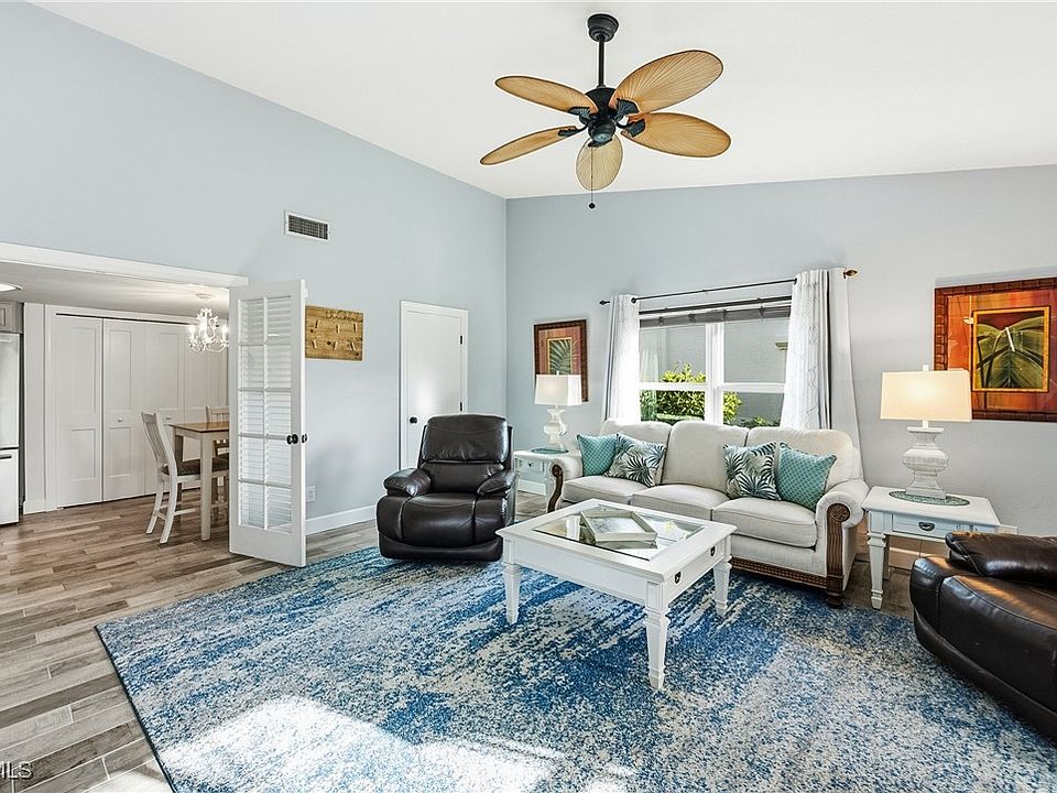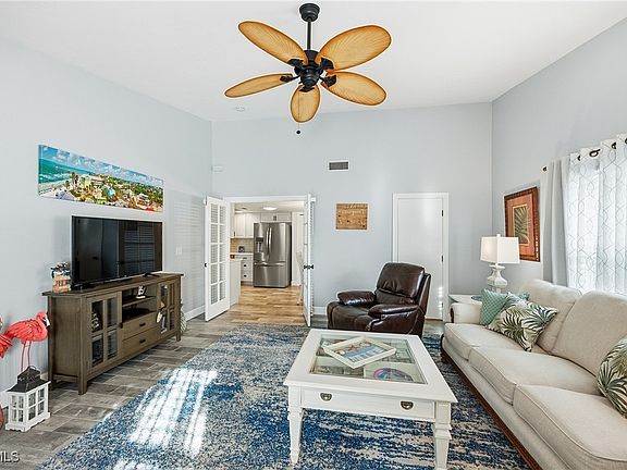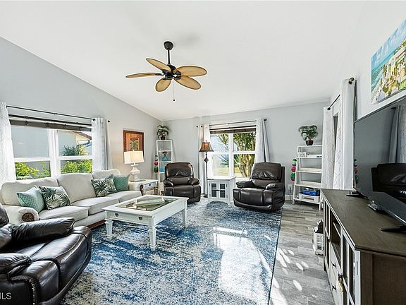 MUST SEE in the highly sought-after gated community of Cinnamon Cove, located just 3 miles from Fort Myers Beach and 4 miles from the Sanibel Causeway! This impeccably remodeled single-family home offers the space you desire with the convenience of maintenance-free living, as the association covers exterior maintenance—including flood insurance, exterior homeowner's insurance, exterior paint, roofs, lawncare and exterior pest control. Thoughtfully updated throughout, the home features brand-new hurricane-impact windows, new gutters, beautiful wood-plank tile flooring, and completely renovated bathrooms and kitchen. The stunning kitchen boasts soft-close cabinetry with pull-out drawers, a striking tile backsplash, “leather-finish” granite countertops, and stainless-steel appliances. The bright and airy primary suite includes a dual-sink vanity and walk-in shower, while the enclosed Florida room—equipped with electric roll-down hurricane shutters—offers additional under-air living space with an outdoor feel. This rare Beechwood model presents one of the largest floor plans in the community, enhanced by an additional family room or den that can serve as a third bedroom with its own half bath. The garage includes storage shelving and screen doors, making this home truly move-in ready with nothing left to do. Cinnamon Cove offers an exceptional array of amenities, including four pools, a clubhouse, fitness center, tennis, pickleball, bocce, shuffleboard and water aerobics, along with a full-time Recreation Director who coordinates live music, food trucks, socials, community meals, and special events. Residents also enjoy access to billiards, ping pong and a library. This quiet, convenient location is close to I-75, RSW International Airport, Red Sox and Twins training facilities, hospitals, shopping, dining, entertainment, the beach trolley and the spectacular beaches of Southwest Florida.