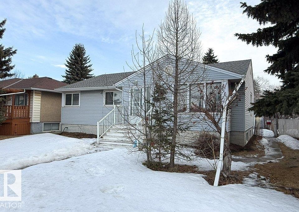 52 ft x 140 ft Lot. Zoned RF3. Huge lot with breeze way and back alley access. Across to Westmount Mall. Excellent schools nearby. Bungalow with over 1,341 sf on main floor plus a 1,267 sf basement in-law suite with kitchen. 3+2 Bedroom, 2 full Baths. 2 Fridges, 2 Stoves, 2 Dishwasher, 2 Washers ( 1 new) and 2 Dryers. Vinyl windows and wide hallways. Excellent rental: main rents for $1725/mo plus utilities and basement was $1425/mo plus utilities. New furnace 2022, Hot water tank 2023. Sump pump 2019, additional attic foam insulation 2018. New vinyl plank flooring in kitchen and bathroom. Over sized detached garage. Long term excellent tenants would like to stay. Excellent investment property or first home. Close to all amenities and quick access to Downtown and Yellowhead.