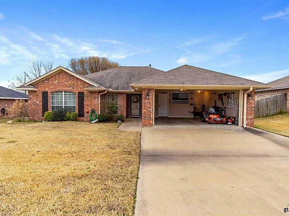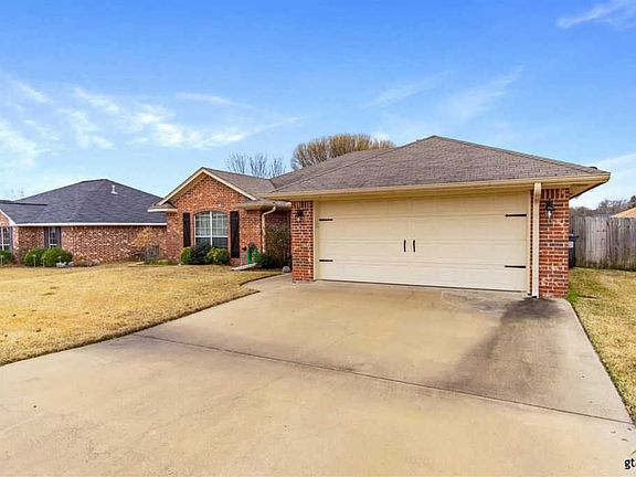 Super cute home located in Running Meadows. This home features an open floor plan with the kitchen, dining, and living area. The living area has a wood burning fireplace and large windows that allow lots of natural light. The entire home has been recently painted. The kitchen has freshly painted white cabinets with new hardware, stainless appliances, bar area for seating and a pantry. The master bedroom is split from the other two guest bedrooms. The master bath has double vanities, a separate walk in shower, jetted garden tub and separate walk in closets. The two guest bedrooms share a hall bathroom. There is a nice size covered patio and a rock walk way to the fire pit. The backyard is fenced in and a perfect size for pets. This home is well maintained and has been recently updated! The location is close to Tyler in a great family neighborhood. The perfect spot to call home.