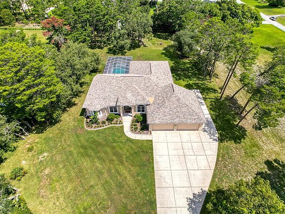 Welcome to Woodland Waters on the Nature Coast in Weeki Wachee Florida. This amazing 4 bedroom 3.5 bath home is stunning inside and out; situated on a meticulously manicured and maintained one acre homesite. Quiet and private, your home becomes your getaway! Beautiful grounds show off pride of ownership, from the lush lawn, thoughtful landscaping, custom curbing around the plant beds and perimeter greenery. The back yard is fully fenced too, and your pets are welcome here. The elegant entry doors open up to reveal the lovely interior, with a view directly outside and focused on the crystal clear caged pool and lanai. Inside, the details are all top shelf, including fresh paint, handsome and durable LVP flooring, Crown molding, tray ceilings, spotless alabaster trim, and French doors. To the left, your office (or 5th bedroom) is private and convenient, then follow down the hall to the Primary Suite, and you’ll be impressed by the roominess, as well as the natural light from the panoramic windows and the French door access to the pool. The En Suite bath is amazing, providing lots of space to get ready to go out! Glass fronted shower with custom shower heads plus an inviting Garden tub for a relaxing soak. Loads of closet space! And the split floorplan adds extra quiet and exclusivity. Through the living space and into the incredible newly remodeled kitchen you find the latest upscale cabinetry, gorgeous stone counters, Stainless appliances; all open to the family room with fireplace and French doors to the pool deck. 3 more bedrooms on this side of the house, one with a convenient full bathroom with direct access to the pool. The 3rd bath is nestled between bed 3 & 4, and the versatile laundry room is oversized and handy to the bedrooms. The massive garage is a huge bonus, with room for 4 cars plus all your toys, and even sports an air conditioned ½ bath!! The rear overhead door on the garage adds lots of convenience and versatility, and on the side there’s plenty of extra parking!!! Two 50 amp power services for camper or EV. The pool deck surrounds your relaxation source, and the lanai is set up like a resort, with covered spaces for lounges or tables, plus an outdoor kitchen!! Over the past 5 years, much has been upgraded by the proud owners (ask for a full list!), but the major items are the new roof, new kitchen & appliances, new flooring, paint, and the list goes on and on!! Truly a unique offering, move in ready, come see.